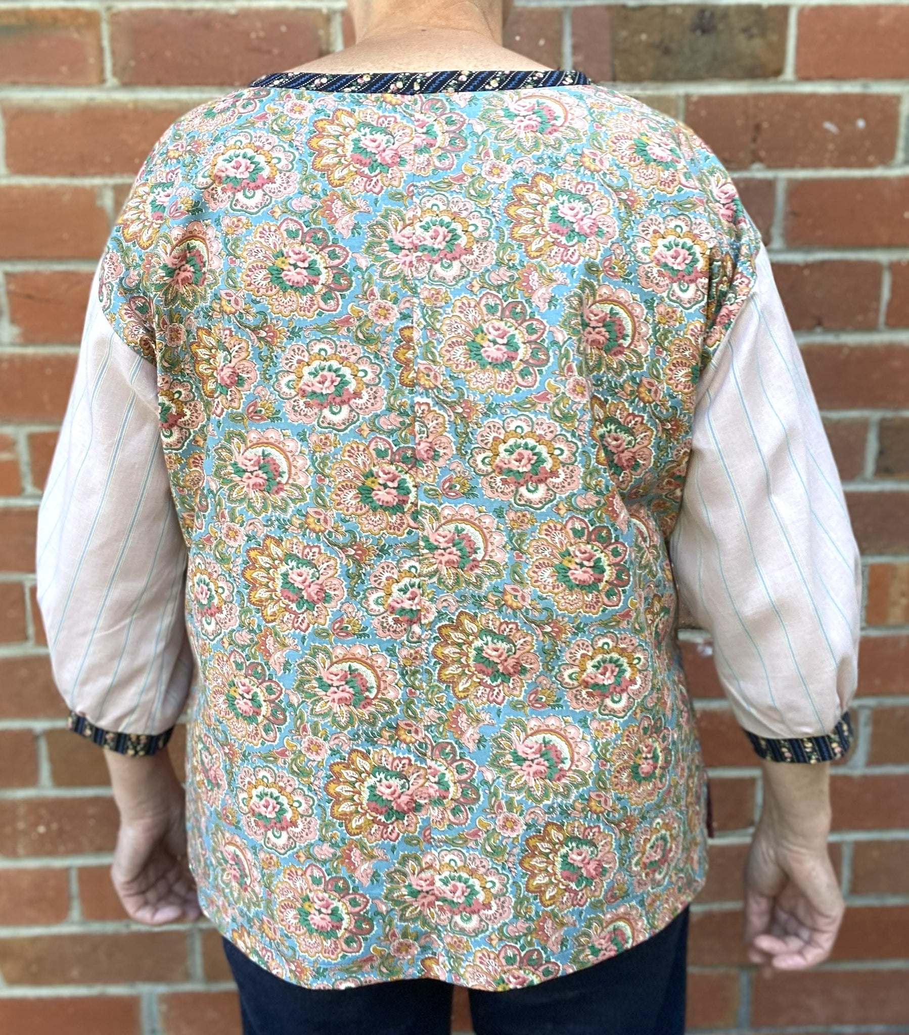 This top came together so well. After much digging through our textile archive,we have paired the perfect combination of new and unused vintage textiles.