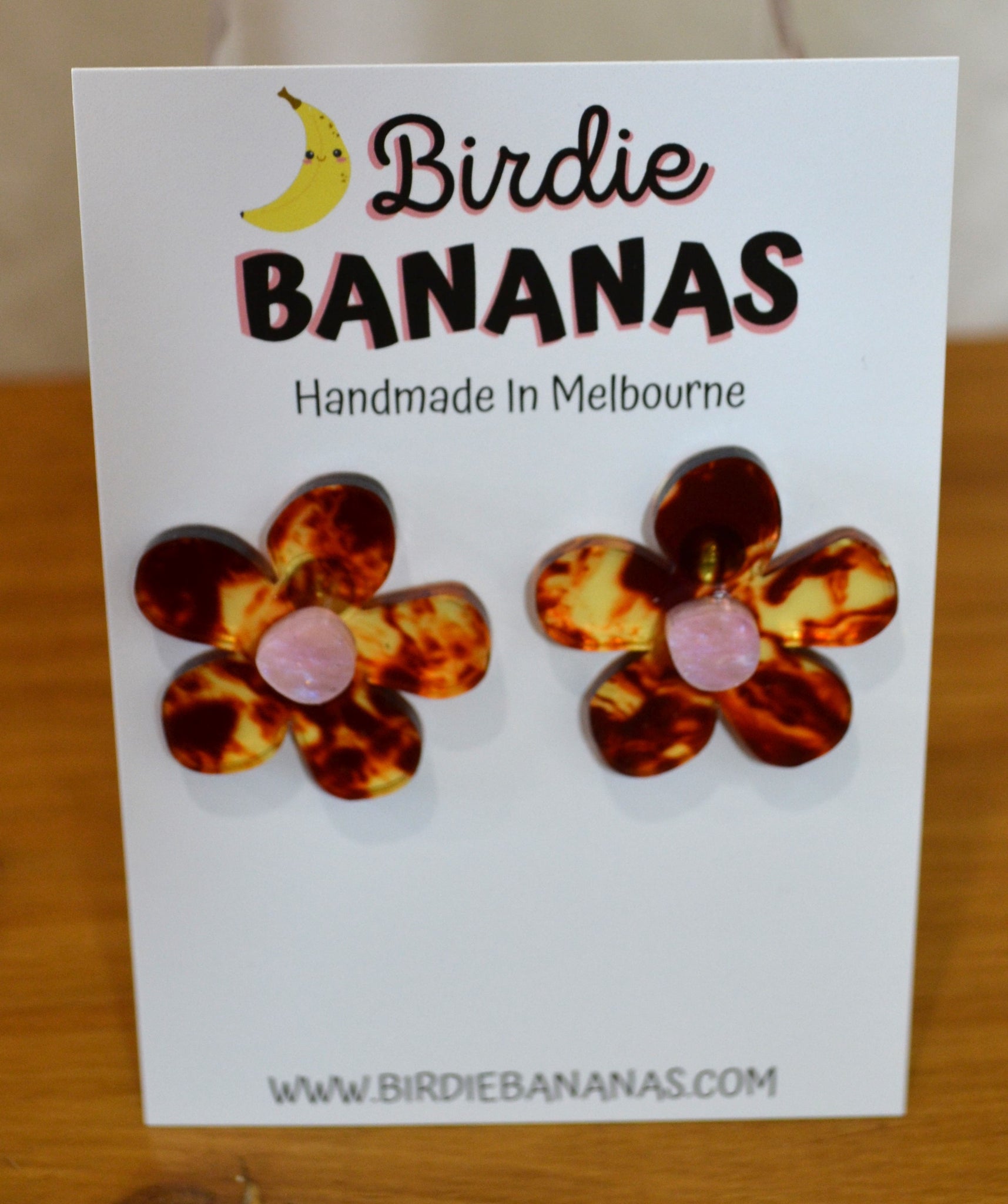 Cute flower stud ear rings in Pink or Tortiseshell.