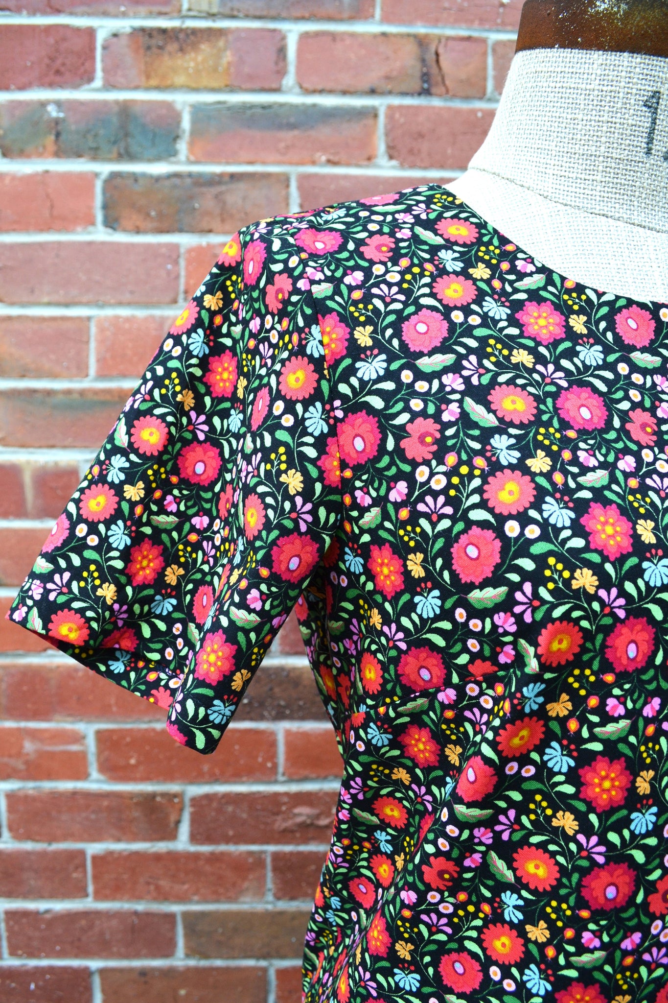 Some of you may recognise this fabric, I used it years ago (in white and in Black). I found a couple of metres in my stash, so have made S & L this time with a short sleeve.